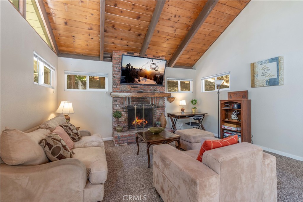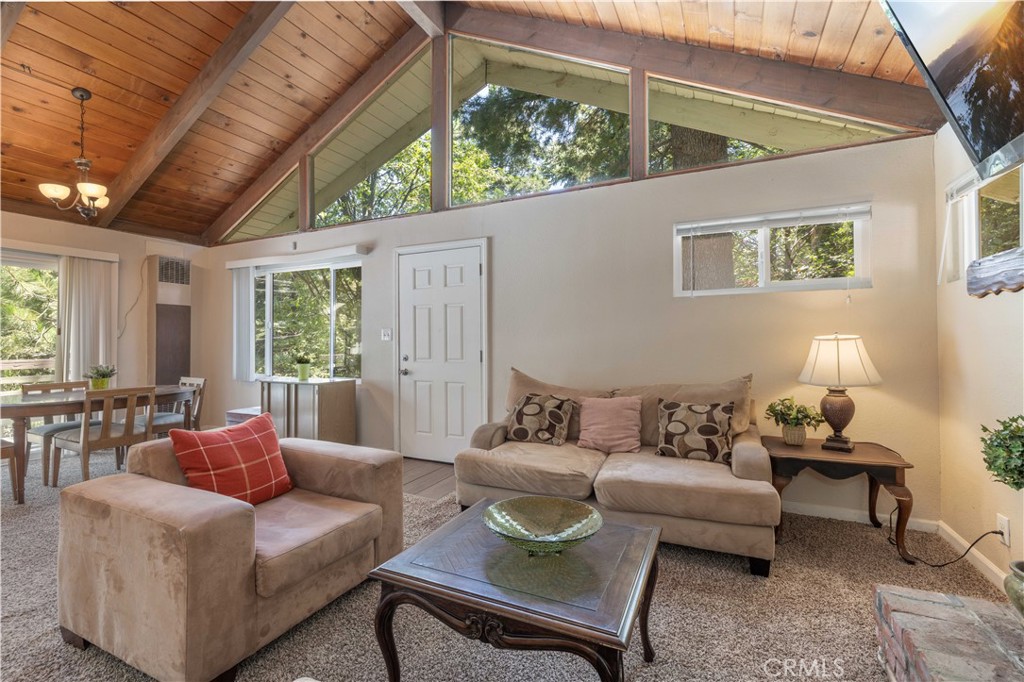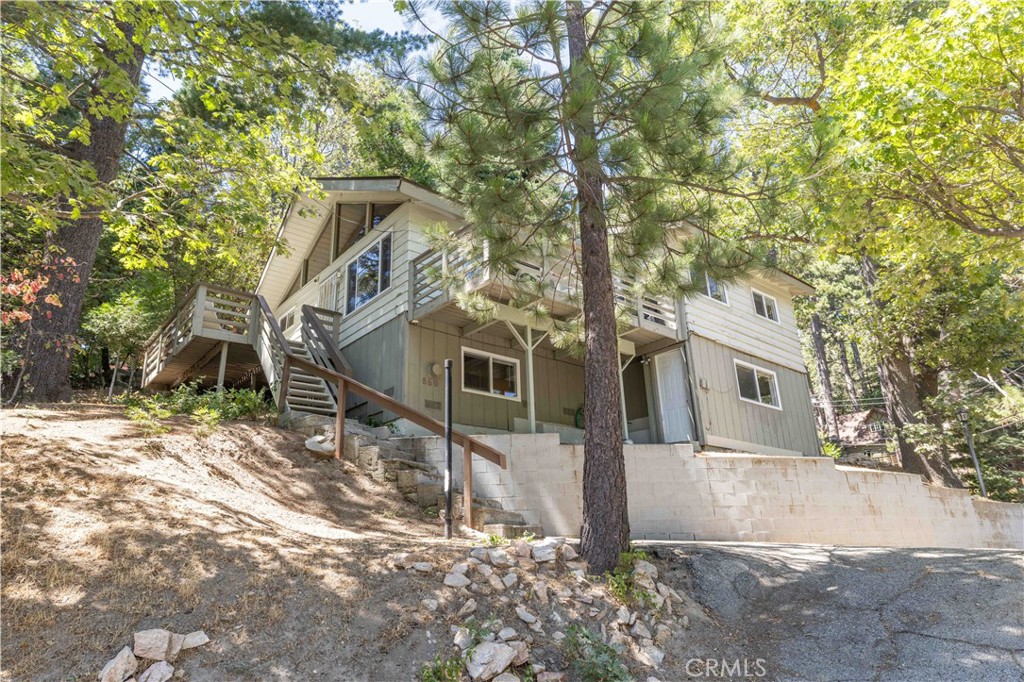 Less than 2 hours away from the hustle of LA, this Lake Arrowhead cabin is the perfect cozy retreat! Located in the prestigious Arrowhead Villas, this 2 bedroom, 1.5 bathroom cabin is full of rustic charm. Breathe in the fresh mountain air, while you relax on one of the two deck spaces surrounded by mature trees. Beautiful vaulted ceilings and lots of natural light throughout, as well as newly installed windows (2023). The spacious eat-in kitchen features ample counter space, while the large dining area provides more seating for larger gatherings. The main bedroom with en-suite powder room as well as a full bathroom are located on the entry level, and the second bedroom is located downstairs. Enjoy the added convenience of a full laundry and storage room, which can also be used as a home office. Take advantage of the recently installed roof (2023), adding value and durability to the home. The possibilities for this cabin are endless, whether you are looking for a primary residence, 2nd home for weekend getaways, or rental income. Easy access to Rim of the World HWY and other mountain communities, shopping, and restaurants.