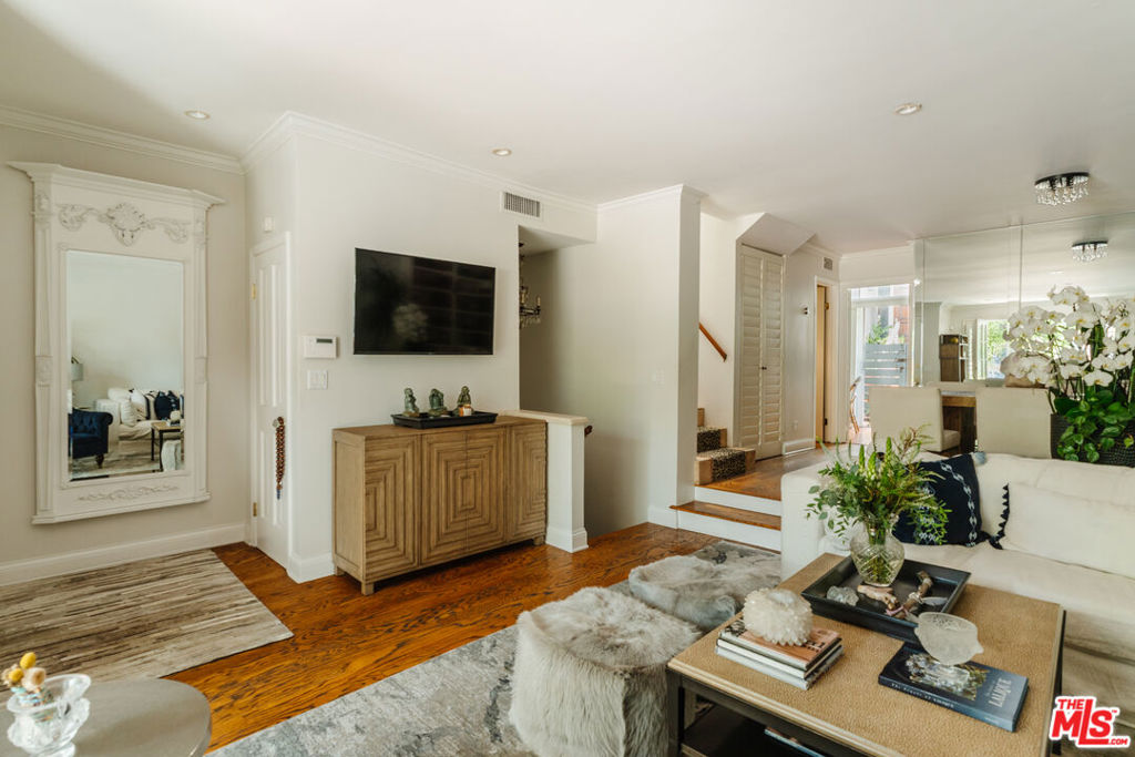 On the market for the first time in 37 years, this townhome at 8611 Burton Way offers timeless charm paired with modern comfort, ideally positioned between West Hollywood and Beverly Hills. A welcoming living room with fireplace opens to a private patio, while the formal dining area and updated kitchen with stainless steel appliances, subway tile backsplash, and a cheerful breakfast nook create the ideal setting for both entertaining and everyday living. A hidden wet bar adds a touch of old-Hollywood glamour, perfect for hosting. Upstairs, vaulted ceilings, shutters, and abundant natural light highlight the spacious bedrooms, including a serene primary suite with sitting area, custom built-ins, and a spa-style bath with dual vanities, soaking tub, and glass-enclosed shower. Additional guest bedrooms provide flexibility for family, guests, or a home office. A versatile den offers the perfect retreat for a media room, study, or library. Throughout, thoughtful details hardwood floors, custom shelving, mirrored accents, and timeless finishes create a warm, elegant atmosphere. Ideally located near world-class shopping, dining, and entertainment, this home offers a rare opportunity to enjoy the best of both Beverly Hills and West Hollywood living.