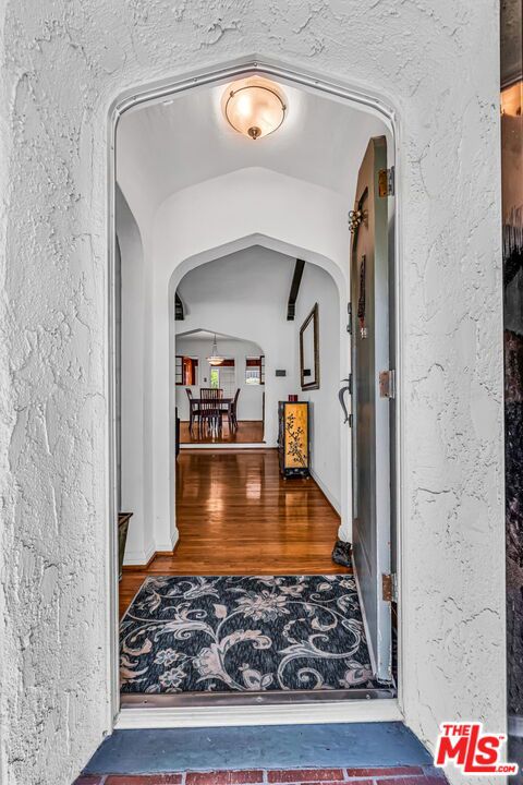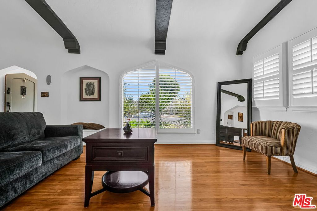 An Architectural Beauty for the Most Discerning Buyer. From the moment you step inside, the refined Tudor archways and majestic beamed ceilings command attention with their warmth and elegance, setting the stage for timeless sophistication. This residence seamlessly blends classic charm with modern enhancements, all thoughtfully executed with quality materials and attention to detail. The original oak floors, restored to perfection, gleam with vintage character, while the reimagined kitchen showcases custom shaker cabinetry, quartz countertops, striking black hexagon backsplash, and year-old stove and refrigerator with ice maker. A cozy wood paneled Den grants direct access to the expansive backyard. The Art Deco inspired bathroom is a true showpiece, marrying 1930s design with original tiled countertop and a new modern vanity, a tub and separate shower. Elegant plantation shutters in various rooms enhance the home’s refined style and appeal. Modern living is supported by extensive upgrades including dual-pane windows, solar panels, tankless water heater, water softener/purifier, multiple mini-split HVAC systems, updated electrical, finished garage, convenient EV charger, and ABS drains. The expansive outdoor continues to impress with brick flower bed, and meticulous hardscaped paver across the walkway, driveway, and backyard, combining beauty with durability. This cherished family home has been lovingly maintained and thoughtfully updated over the past 63 years, now on the market for the very first time. Nestled on a quiet cul-de-sac, just two miles from Inglewood’s world-class entertainment, sports venues, and dining. Offering both tranquility and convenience, with all the Bells & Whistles–Run Don’t Walk to Your Dream Home!