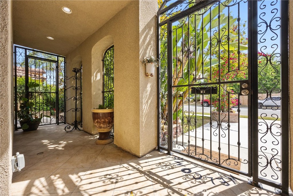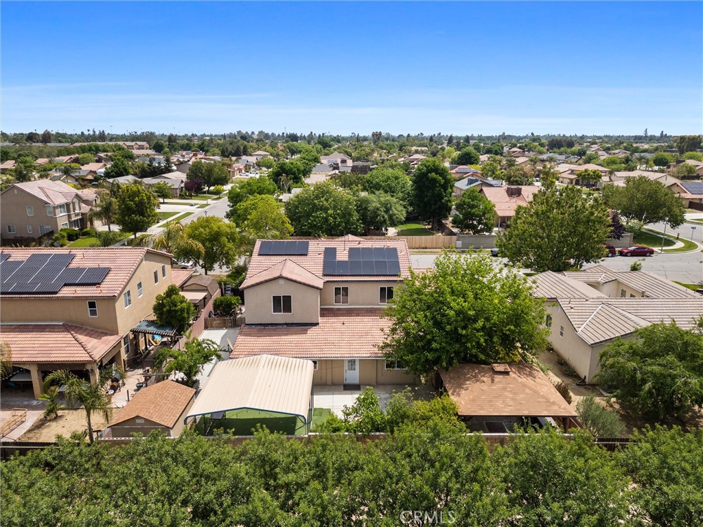 Beautifully upgraded 2-story home with 6 spacious bedrooms and 2.5 baths. The downstairs features tile flooring, cathedral ceilings, ceiling fans throughout. The open concept kitchen is fully remodeled with stainless steel appliances, upgraded countertops, a decorative backsplash, and a walk-in pantry. The expansive backyard is perfect for entertaining with a built-in BBQ, outdoor kitchen, covered patio, and a carport for added shade. There is also a storage unit for additional lawn equipment and or tools. A cinder block wall surrounds the backyard for added privacy. The gated RV access and iron doors on both sides of the home add convenience and security. The enclosed patio room is ideal for a game room, gym, or extra living space. Additional features include a dog run, spacious 3-car garage, 9 surveillance cameras, and energy-saving solar panels that the buyer can assume.