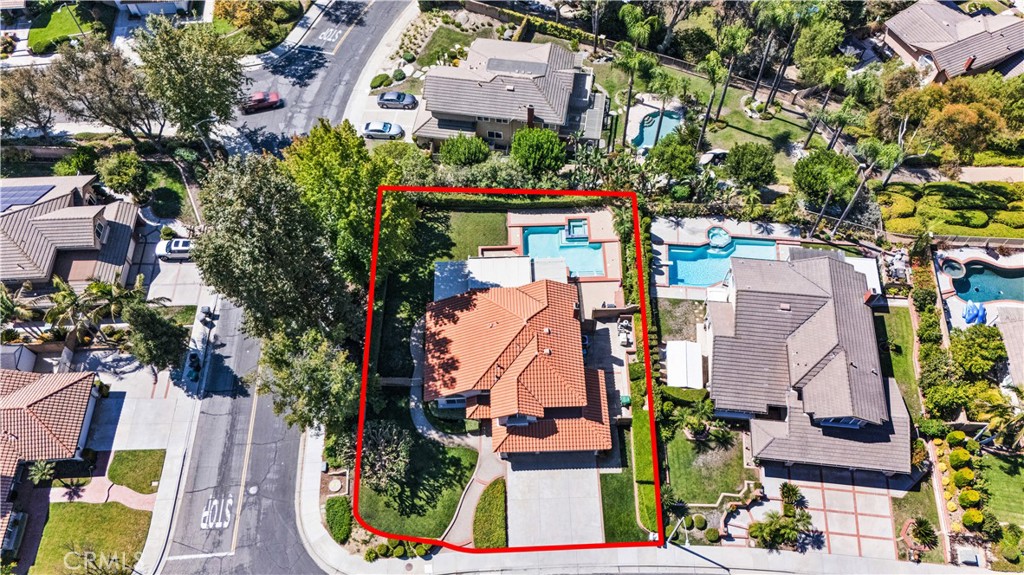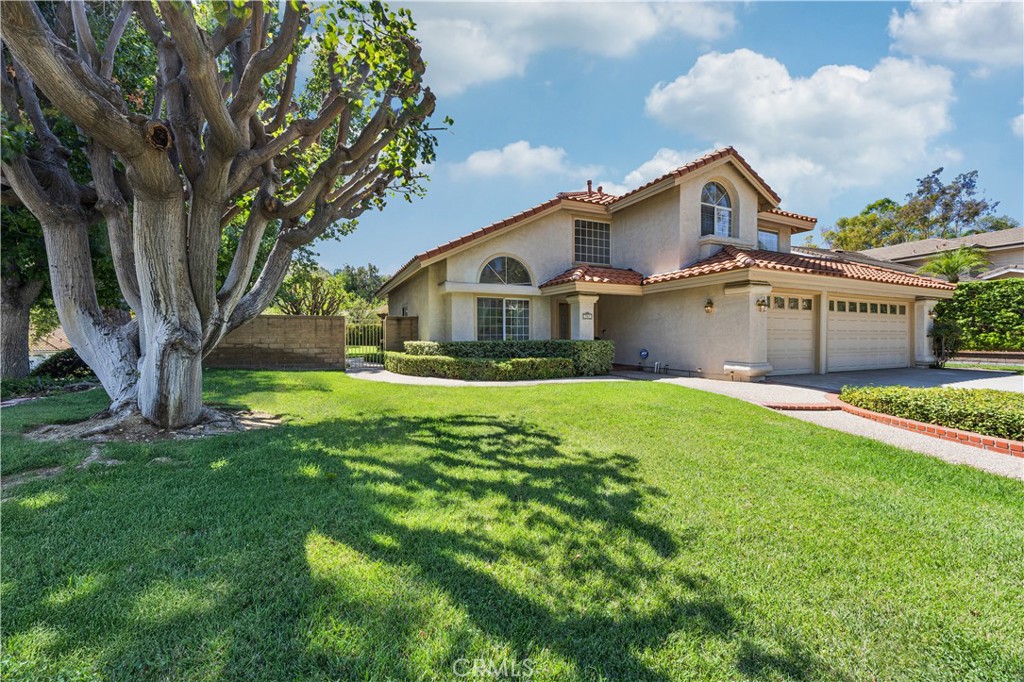 Welcome to this beautiful and well-situated corner lot home, offering an exceptional outdoor living experience—a rare find in today’s market. Nestled in the highly sought-after Heather Glen community of Via Verde, known for its tree-lined streets and picturesque rolling hills, this residence is surrounded by serene greenery and mature trees that provide both privacy and charm. The backyard is truly an entertainer’s paradise, featuring A spacious pergola-covered paver patio thoughtfully divided into three multifunctional sections, a good-sized pool and spa with classic plantation red brick coping, a cozy brick-lined firepit, a built-in stainless steel BBQ island—perfect for hosting unforgettable gatherings and creating lifelong memories. Step inside to experience timeless elegance starting with a grand double-height foyer and living room, where arched, multi-paned windows allow natural light to flood the space. The remodeled kitchen boasts a Fisher & Paykel 6-burner stainless steel stove, Granite countertops, classic wood cabinetry, and stylish tiled backsplash. The luxury primary suite features a vaulted ceiling, direct access to an En Suite bathroom with: double sinks, soaking tub, separate shower, and a second closet. This charming, time-worn home offers a fantastic opportunity for creative buyers to add their personal style and bring out its full potential. Note: Pool and spa heater are not operational. Home is being sold in as-is condition. Prime location, enjoy easy access to Via Verde Park, Via Verde Country Club, Bonelli Park/Puddingstone Lake, Raging Waters. Conveniently located near the 10 & 57 Freeways.