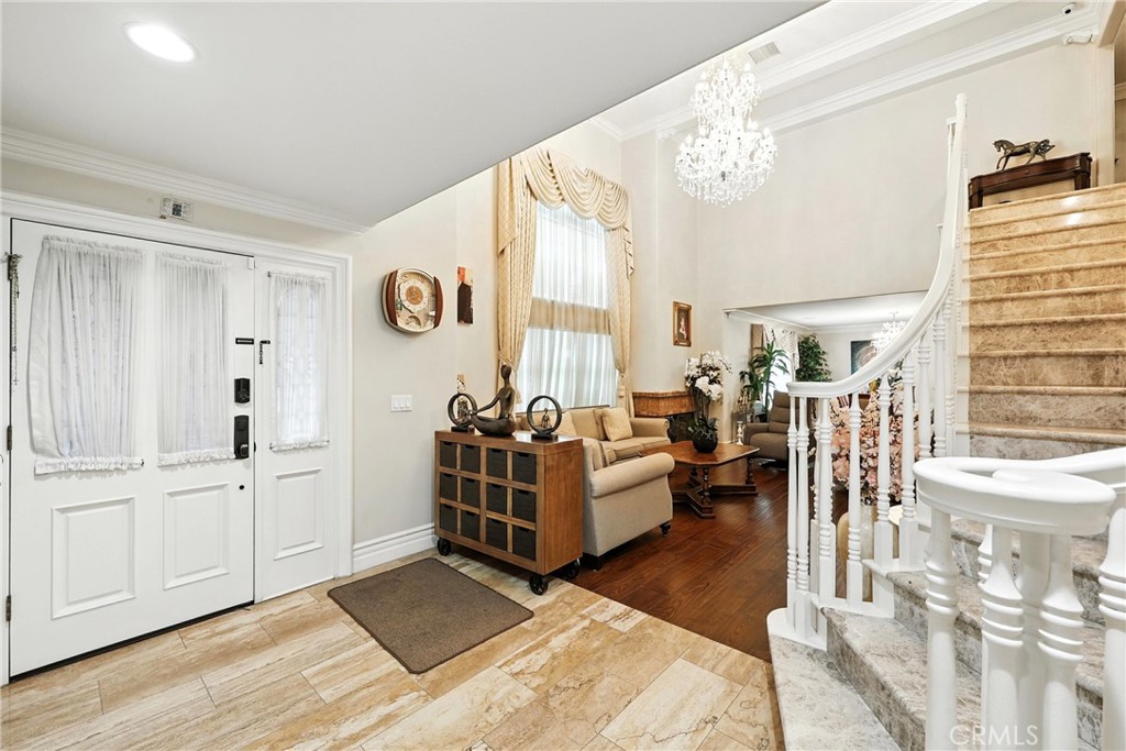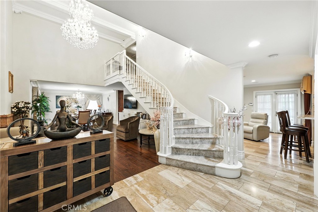 No details have been spared on this 3,922 SqFT home with a large 8,128 SqFt lot! This stunning and sprawling 2 story home greets you with a formal entryway featuring a curved staircase, chandelier, and a vaulted ceiling that flows to the living room with a cozy fireplace and a dining area one direction then to a family room with a wet bar and an entertainer’s kitchen the other direction. The entertainer’s kitchen is masterfully designed with an island, walk-in pantry, professional-grade stainless steel appliances, and an elegant breakfast nook. The first floor is abundant with natural lighting filtering through the expansive windows and also conveniently offers 1 common bathroom plus a secluded 1 bedroom with an attached bathroom and laundry room with a private hallway perfect for guests or multi-generational living! Upstairs leads to a tastefully decorated landing with custom niches and luxe lighting that leads to the hallway where the remaining 4 bedrooms and 4 bathrooms are located. The oversized primary suite offers a walk in closet, attached bathroom with a vanity area and soaking tub, attached office, and a private balcony with tile flooring and wrought iron railings. The 3 remaining bedrooms each have their own bathroom and 2 of those bedrooms also have their own walk-in closet; everyone is sure to enjoy their own private space. The home offers an attached 2-car garage as well as a detached 2-car garage accented by pavers along the driveway and to the backyard where there is a covered outdoor kitchen. Boasting with curb appeal and exuding elegance, this luxurious North Downey home can only be home to one lucky family so act fast!