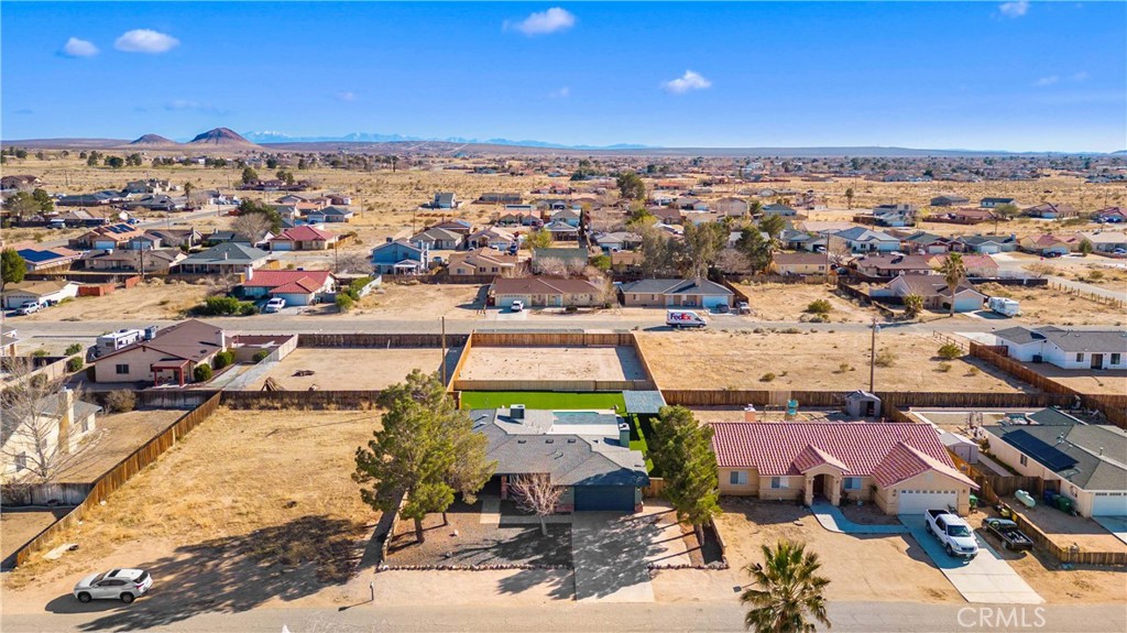 Welcome Home to this single-story pool home with upgrades galore!! Back lot is fenced and incorporated into this home for a total of approximately 19,863 sq ft. Double gates in front and back give access to parking for all the toys! Front yard has established trees for a cool and shaded front area. This home has all the feeling of custom built with ceramic wood look tile throughout and custom wood shutters. All fixtures are upgraded and ceiling fans in all the bedrooms. Vinyl windows throughout. Fireplace in the family room for cozy evenings. The kitchen is upgraded and open to the dining area and family room with room for barstool seating! An enclosed sunroom is an easy conversion into 4th bedroom. Backyard is an oasis with 2 separate patio areas, artificial turf, custom wood fencing and cross fencing. Best of all is a pool for all entertaining events or just family fun!! 30 minutes from Edwards Air Force Base.