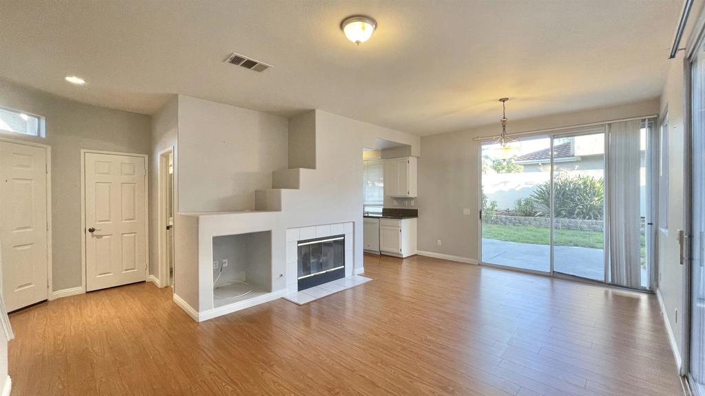 – QUIET, BRIGHT, UNIQUE, LANDSCAPED, CORNER UNIT. – Unique blend of privacy, comfort, and convenience. – All rooms have windows that provide plenty of natural light. – Hardwood flooring downstairs, cozy carpet upstairs. – Open-concept kitchen with granite counters, recessed lighting, and ample cabinets. – Separate dining area and large, cozy living room with a fireplace, perfect for entertaining. – All 3 bedrooms are located upstairs. – Primary suite features a vaulted ceiling, dual-sink vanity, and walk-in shower. – Nice-sized, easy-maintenance yard, perfect for entertaining. – Attached 2-car garage plus driveway. – Las Casitas is part of the Westview Master Community and is well-located. – Short distance to shopping, dining, movies, and schools. – Easy access to freeways (I-15, SR-56). – Community provides playground and park areas and access to neighborhood tennis courts.