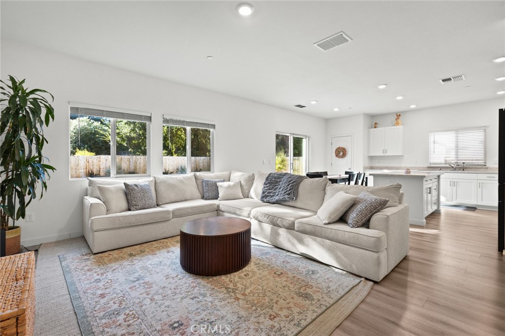 Better than new! This D.R. Horton home has been lived in just 1.5 years, saving you thousands with backyard landscaping and window coverings already complete. Set on arguably one of the best lots in the neighborhood—with no neighbor on one side and no two-story homes behind—you’ll love the sense of privacy and space this property offers. Step inside and you’re greeted by open-concept living, complete with recessed lighting, and waterproof hybrid-core flooring that flows throughout. The kitchen is both stylish and functional with crisp white cabinetry, quartz counters, stainless steel appliances, a gas range, and a large center island that makes the perfect gathering spot. The spacious primary suite is a true retreat with a walk-in closet and en suite bath featuring dual sinks and quartz counters. The guest hall bath also includes dual sinks, while the downstairs guest bath adds a touch of warmth with its modern wood vanity. Out back, the yard was designed for living and entertaining. A massive 30’ x 14’ concrete patio sets the stage for barbecues and gatherings, while the lush lawn and raised garden beds add charm and versatility. There is also a side yard big enough for a small trailer. This is also a true smart home—equipped with cameras, video doorbell, thermostat, garage, and front door access—all easily controlled through the ADT app. With energy-saving solar panels, an attached two-car garage, and thoughtful upgrades throughout, this home combines modern convenience with everyday comfort. From its premium lot and smart features to its stylish finishes and move-in ready upgrades, this property stands out as one of the best opportunities on the market today.